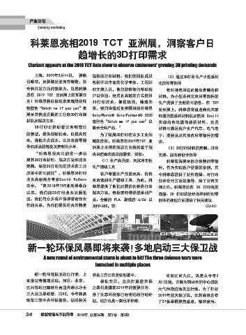 率,降低开发成本,以及改善零部 域的应用,科莱恩在2019年TCT 亚 求。