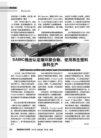 推出SABIC认证的循环聚合物。该聚 品的开创性、高质量、安全度高的 装材料。这些公司的共同点是需要