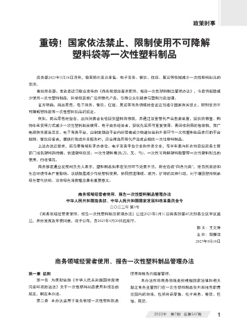 根据商务部、发改委近日联合发布的《商务领域经营者使用、报告一次性塑料制品管理办法》,今后将鼓励减
