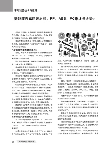 相比于传统燃油车,新能源汽车新增了电池组模 应用于汽车仪表盘、电池包外壳、门护板、立柱、座