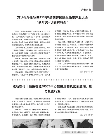 产业发展,万华化学成功开发出聚酯和聚醚体系全系 行业的绿色转型赋能。