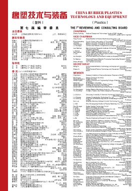 张 宇 《橡塑技术与装备》编委会 秘书 Board Secretary general