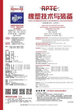 编辑出版 / 《橡塑技术与装备》杂志社 EDITING AND PUBLISHING /