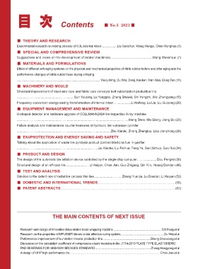 Suggestions and views on the development of rubber machinery ........................................... Wang Wenshuai (7)