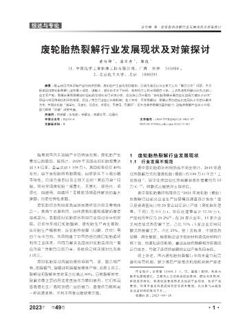 综述与专论 黄传锦 等·废轮胎热裂解行业发展现状及对策探讨