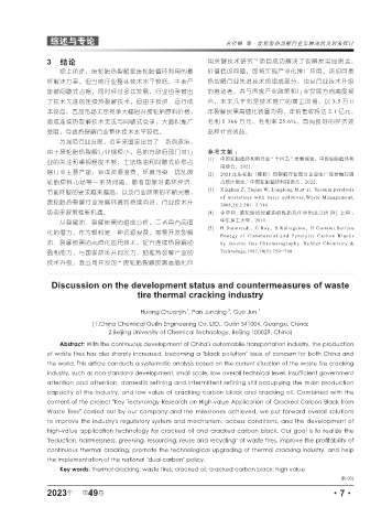 综述与专论 黄传锦 等·废轮胎热裂解行业发展现状及对策探讨