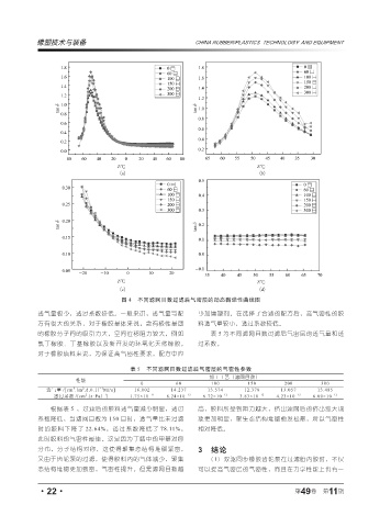 根据表 5 ,过滤后的胶料透气量减少明显,透过 高,胶料所受到阻力越大,挤出滤网后的挤出涨大现