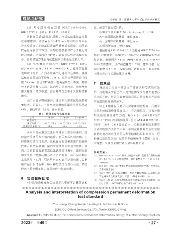 较为困难,阻碍内应力释放,导致试样恢复的厚度较 2015 文中要求,压缩永久变形计算采用中值作为试