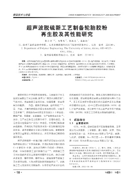 低碳、环保的橡胶工业化脱硫方法 [5~6] 。该脱硫工艺 胶粉超声波脱硫技术及其在橡胶制品中的应用研究工作,已发
