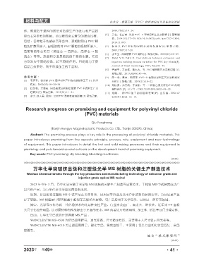 程研究 [J]. 聚氯乙烯,1993(05):11-21. [11] 郑刚 . 一种 PVC 加工助剂混料装置 [P]. 山东省 : CN2167