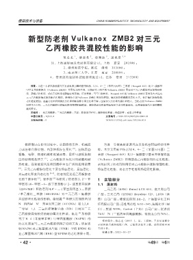 甲基苯并咪唑锌盐(Vulkanox ZMB2)并用作为防老剂,系统研究了防老剂 Vulkanox ZMB2 用量对三元乙丙橡胶共混胶物理性