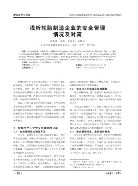 在的问题,并就提高其安全管理水平提出相应的建议,助推轮胎生产企业建立提高市场竞争力和保障全员人身安全的管理机制。