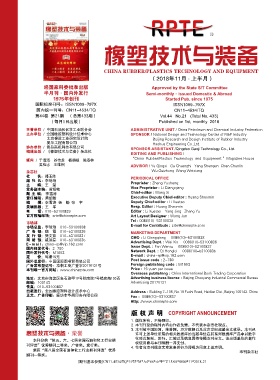 出版发行:全国橡胶塑料设计技术中心 Address : Building 7-105, No.19 Fushi Road, Haidian Dist.,Beijing 100143. China